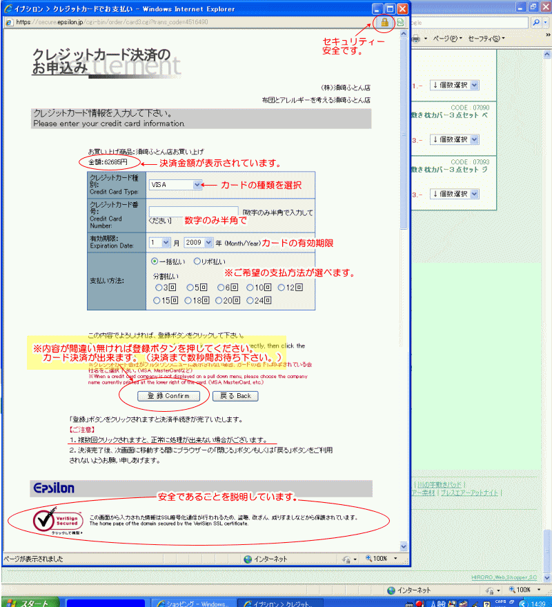 クレジットカード決済(イプシロン決済)をご選択の方は引き続きご覧ください。