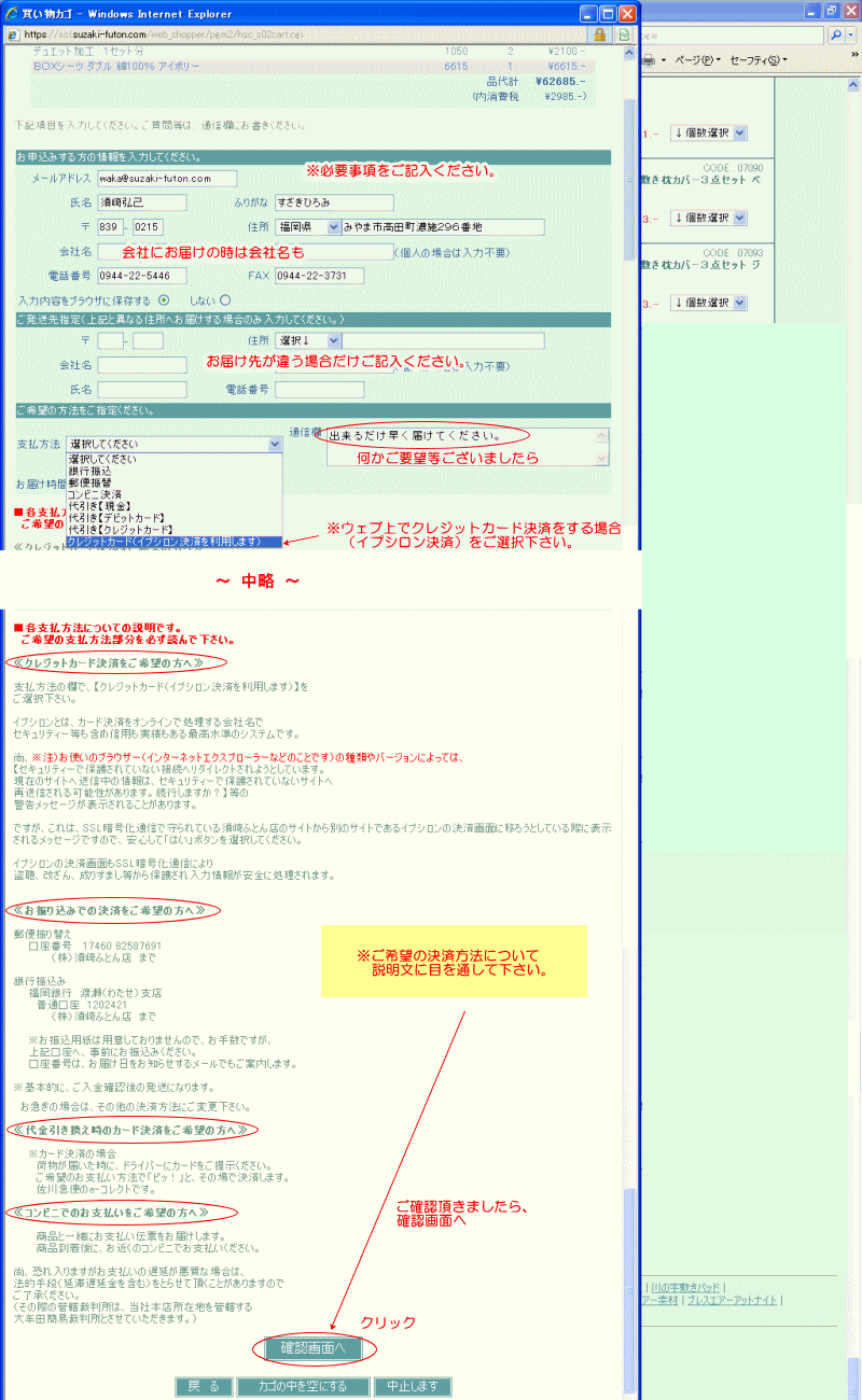 ご決済方法を代引きやコンビニ払い等にされた場合は、確認画面へ。(説明画面 11 へ進みます。)